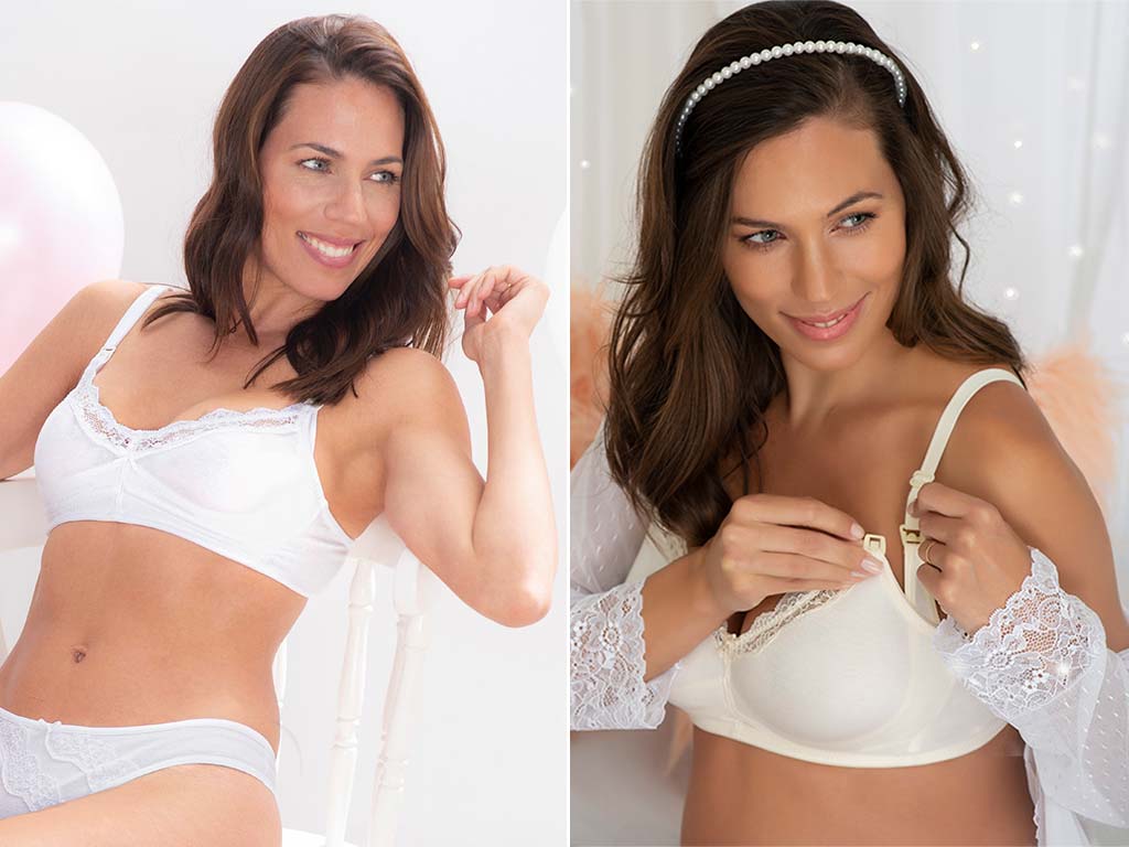 Corpiño maternal algodón lycra con puntilla sin aro.